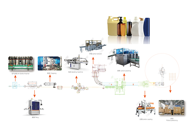 洗發(fā)水灌裝生產(chǎn)線工藝流程