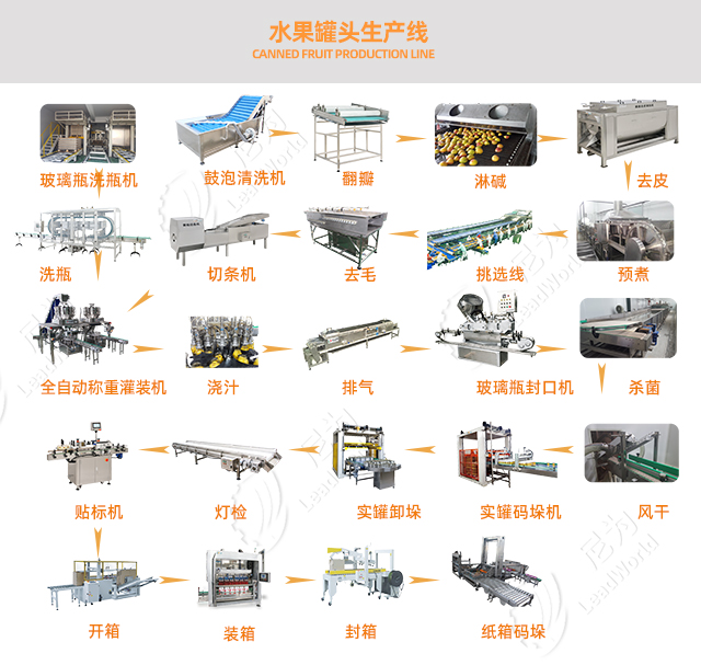 下圖為什錦罐頭(水果罐頭生產(chǎn)線為例)具體可致電尼為機械!