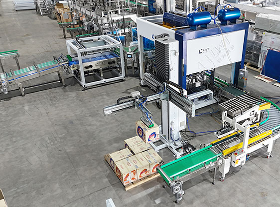 單立柱碼垛機:單立柱碼垛機將封好的紙箱按照一定的排列方式和層數(shù)進行碼垛。這一步驟自動化程度高,能夠大幅提高倉儲效率,減少人工搬運成本,并為后續(xù)的物流運輸提供便利。