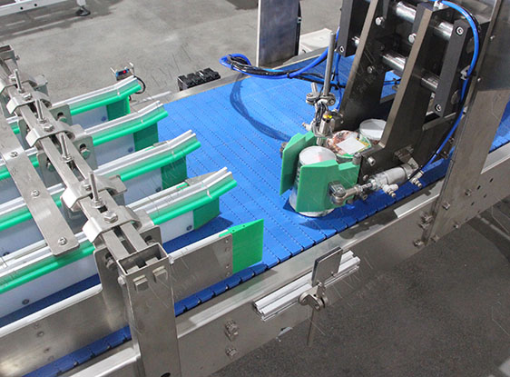 伺服分道機:伺服分道機利用高精度的伺服控制系統(tǒng),確保桶裝泡面能夠準確無誤地分配到各個裝箱位置。這一步驟的精確性對于后續(xù)裝箱操作的順利進行至關(guān)重要,能夠大幅提升整體生產(chǎn)效率和包裝質(zhì)量。