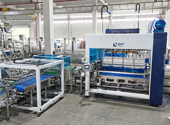 裝箱機:裝箱機負責將桶裝泡面按預設(shè)的數(shù)量和排列方式裝入已打開的紙箱中。
