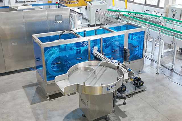 由旋轉(zhuǎn)盤(pán)和進(jìn)出口組成的進(jìn)瓶臺(tái),操作簡(jiǎn)便,更換不同瓶型,調(diào)節(jié)方便。