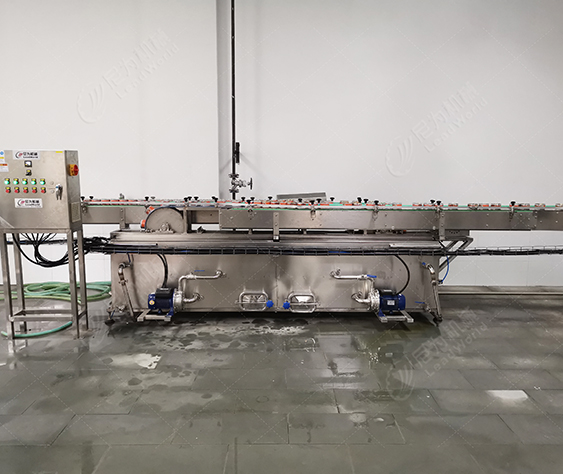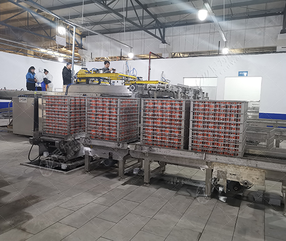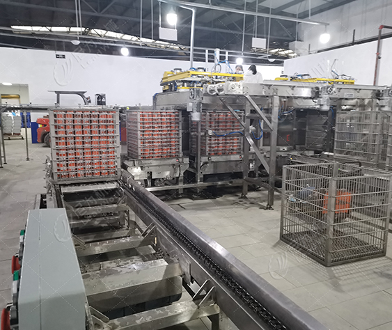客戶的產(chǎn)品是馬口鐵罐紅燒肉罐頭,根據(jù)客戶的廠房面積、物料、包材特點(diǎn)及產(chǎn)量,我們?yōu)榭蛻籼峁┘t燒肉罐頭生產(chǎn)線設(shè)備(磁力空罐卸垛、空罐洗罐、輸送、提升、實(shí)罐清洗、裝卸籠、吹干、碼垛等設(shè)備),投產(chǎn)期間使用良好,后期客戶又和我司簽訂了午餐肉罐頭生產(chǎn)線設(shè)備合作。